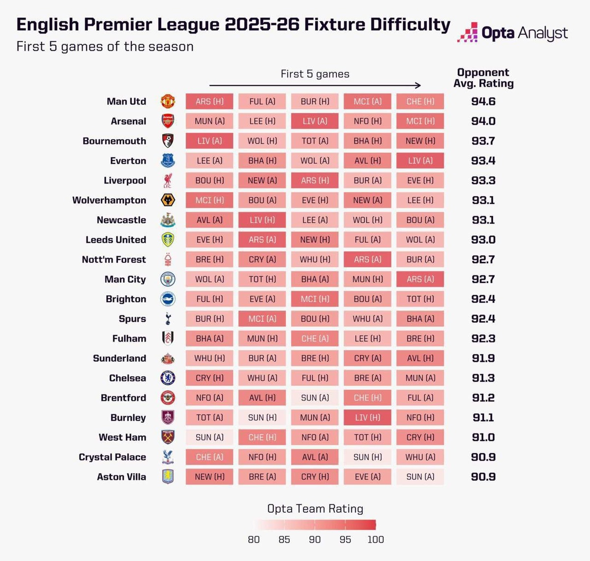 ⚡️📆 Расписание первых 5 туров АПЛ и рейтинг сложности календаря по % 😱 «Арсенал» и «МЮ» — в тотальном шоке от старта сезона: жёсткие соперники и битвы каждую неделю. 😎 А вот «Астон Вилла» потирает руки — у бирмингемцев вполне комфортный вход в чемпионат. #АПЛ #PremierLeague #Арсенал #МЮ #АстонВилла #footballrave #английскийфутбол