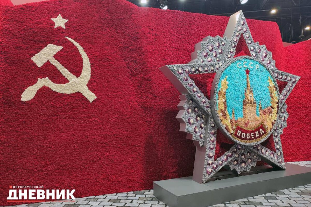 🌸 На ПМЭФ представили стену из живых цветов в виде ордена «Победа»