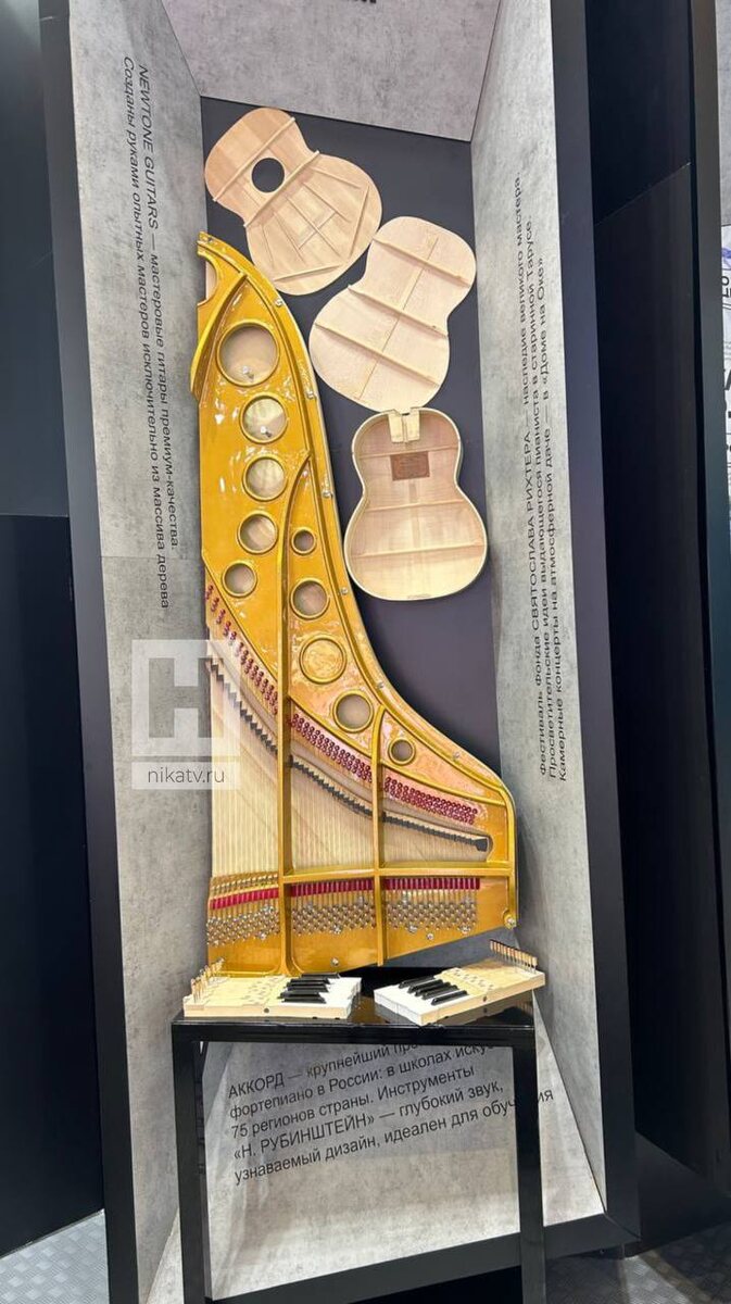 ⏩ Промышленность, кадры, традиции, культурный код и не только. Здесь можно увидеть фрагмент рояля «Аккорд», миниатюру тарусских саней и вышивку, панно из деталей, сделанных в Калужской области.