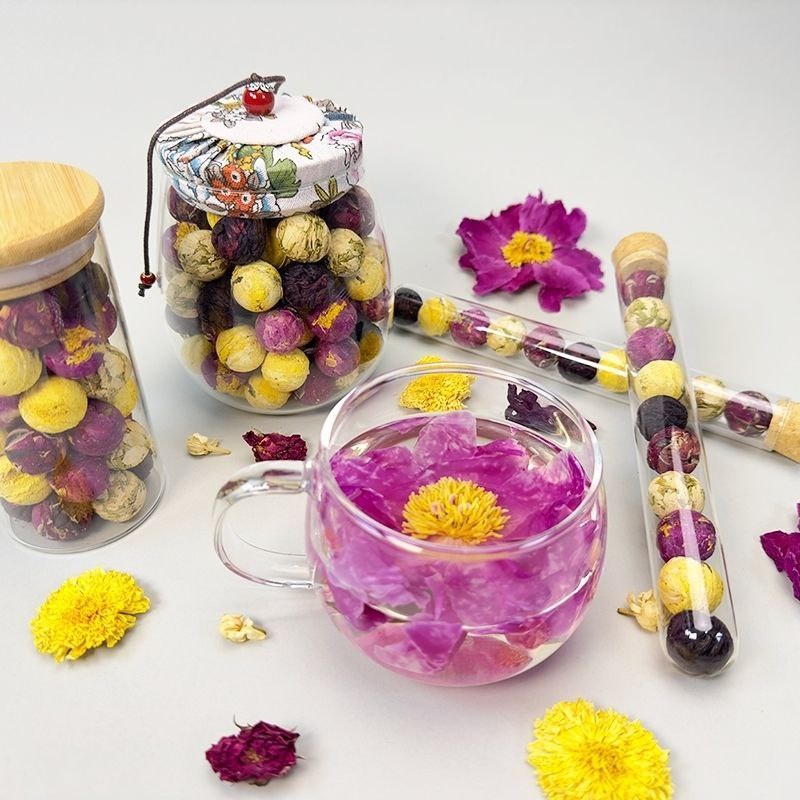 #товардня 📌Завершаем серию постов "Топ-10 китайских чаёв". Представляю Вам "Цветочный чай Dragon Ball" 🌺 Шарик с цветками желтой хризантемы - имеет нежный запах цветов и свежести. Цветок хризантемы смягчает вкус традиционного пуэра и вносит неповторимые нотки в послевкусие. Вкус легкий и свежий, послевкусие мягкое. Обладает мощным омолаживающим эффектом, выводит шлаки и токсины, ускоряет обмен веществ, снимает нервное напряжение и усталость, тонизирует, прекрасно утоляет жажду. 🌺 С цветками белой хризантемы - Этот цветок используется в медицине для успокоения, лечения нервной системы, профилактики простудных заболеваний и других недугах. 🌺 С цветками пиона - Цветки пиона используют в качестве добавки к чаю для придания ему нового аромата и вкусовых оттенков. При заваривании получается напиток с древесным ароматом и послевкусием пиона. В традиционной Китайской медицине чай из пиона применяют для повышения иммунитета и в качестве профилактики простудных заболеваний. 🌺 С жасм