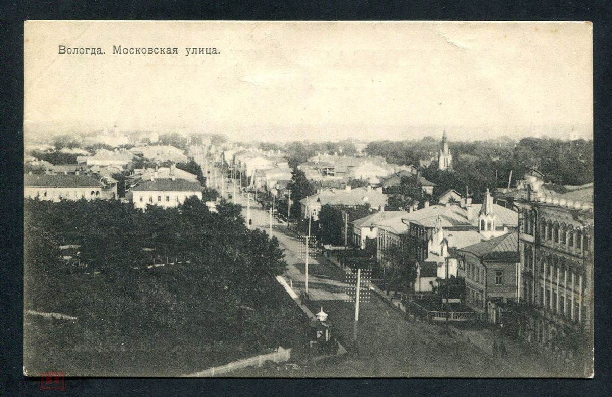 На открытке начала ХХ века Московская улица, а сейчас это Советский проспект. Справа на снимке здание гостиницы «Золотой якорь», а сделана фотография была с колокольни церкви Николая Чудотворца на Сенной площади. Подробнее про церковь можно прочитать здесь >