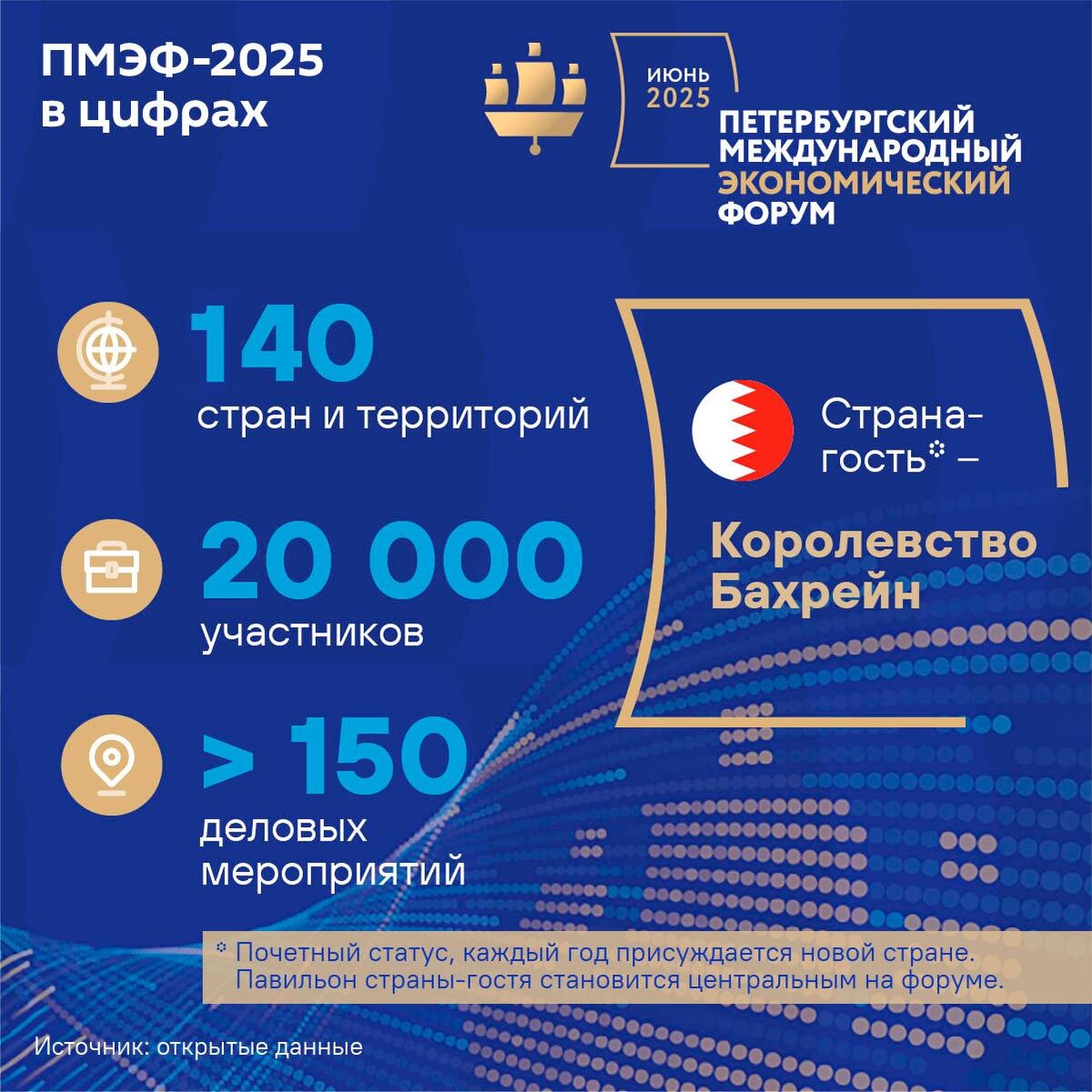 Более 20 тысяч представителей из 140 стран, включая делегации из ЕАЭС, СНГ, БРИКС, АСЕАН, Африки, Ближнего Востока, Латинской Америки примут участие в работе форума. ▪️В программе – свыше 150 мероприятий. На них обсудят цифровую экономику, здравоохранение, международные отношения, экологию, технологические инновации, борьбу с фейками. ▪️20 июня на пленарном заседании ПМЭФ выступит президент России Владимир Путин. ▪️Петербургский экономический форум проходит уже в 28 раз. Сегодня ПМЭФ – крупнейшая международная площадка для обсуждения глобальных вызовов и сотрудничества. В прошлом году на форуме подписали контрактов на 6,4 трлн руб. В этом, как ожидают эксперты, их сумма может превысить 7,5 трлн. руб.