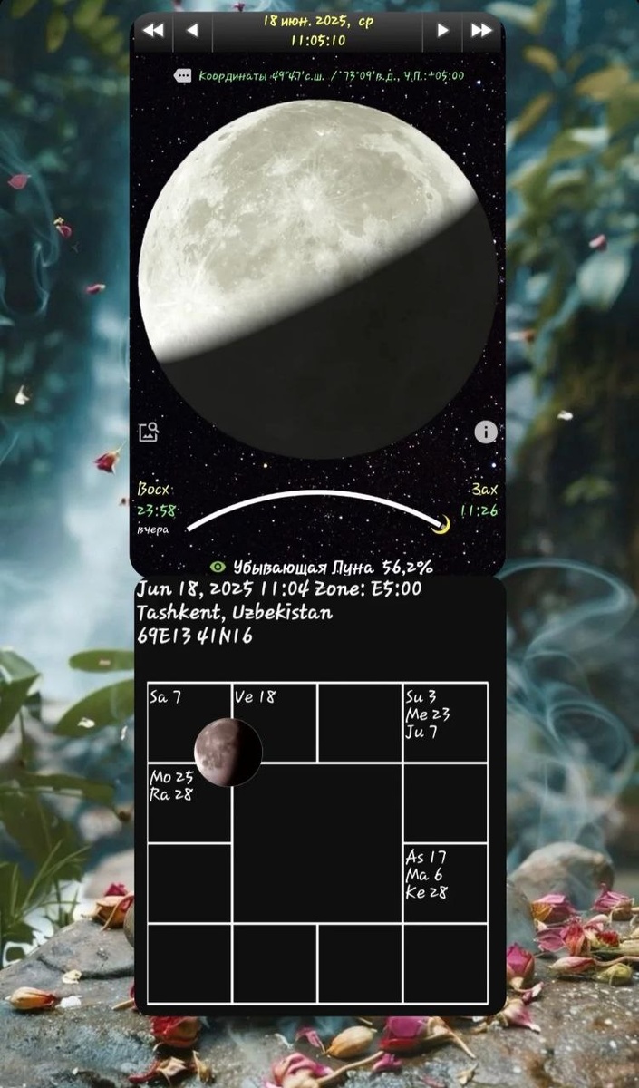 🌜18.06.2025.🌛 Ведическая Астрология Убывающая Луна на границе Водолея и Рыб 🌜Луна убывает в Водолее, а на закате окунается в пространство Рыб - состояние может быть пограничным, местами потерянным. Сегодня Северный узел Раху находится близко к Луне, поэтому стоит быть внимательнее, чем обычно, смотреть в корень и слышать между строк. Важно пропускать информацию не через ум, через сердце и разум, чтобы не попасться на удочку иллюзий. И, конечно же, всегда помнить кто мы и куда идём. 🌜Мы вступаем с вами в одно из редких небесных положений-Кала Амрита Йога- процесс глубокого очишения Души от того, что не даёт ей прогрессировать и двигаться дальше. Поэтому отпускайте то, что уходит, расчищайте то, что рассыпается, значит, пришло время подготовить пространство для нового в жизни. Это природный цикл, это жизнь, и это необходимо. Данная Йога продлится до 15 июля.