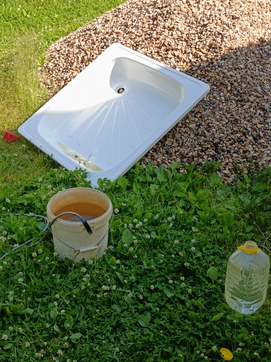 Вчера и пробовали соляную кислоту 14% в действии. Поддон летнего душа, что за 15 лет местами приобрёл несмываемые оттенки, превратился в белоснежное чудо. Спасибо, кто посоветовал это средство!