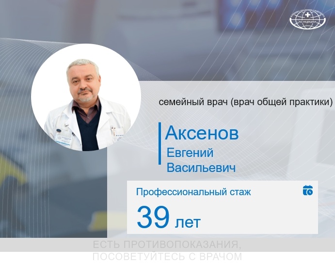 В клинике АО «Медицина» (клиника академика Ройтберга) принимает Аксенов Евгений Васильевич – высококвалифицированный специалист в области семейной медицины с почти 40-летним стажем. Он сочетает глубокие теоретические знания с богатым практическим опытом, что позволяет ему оказывать пациентам комплексную медицинскую помощь на самом высоком уровне. 🎓 Образование – 1986 г. — Воронежский государственный медицинский институт им. Н.Н. Бурденко, специальность «Лечебное дело» – 1990–1992 гг. — Клиническая ординатура во Всесоюзном кардиологическом научном центре РАМН СССР 📌 Квалификация – Врач общей практики первой категории – Кандидат медицинских наук – Член Российского научного медицинского общества терапевтов 💡 Профессиональные навыки – Диагностика и лечение широкого спектра заболеваний у взрослых и детей – Ведение пациентов с кардиологическими, ревматологическими и хроническими заболеваниями – Диспансерное наблюдение, профилактика и раннее выявление патологий – Опыт работы в кардиоревмат