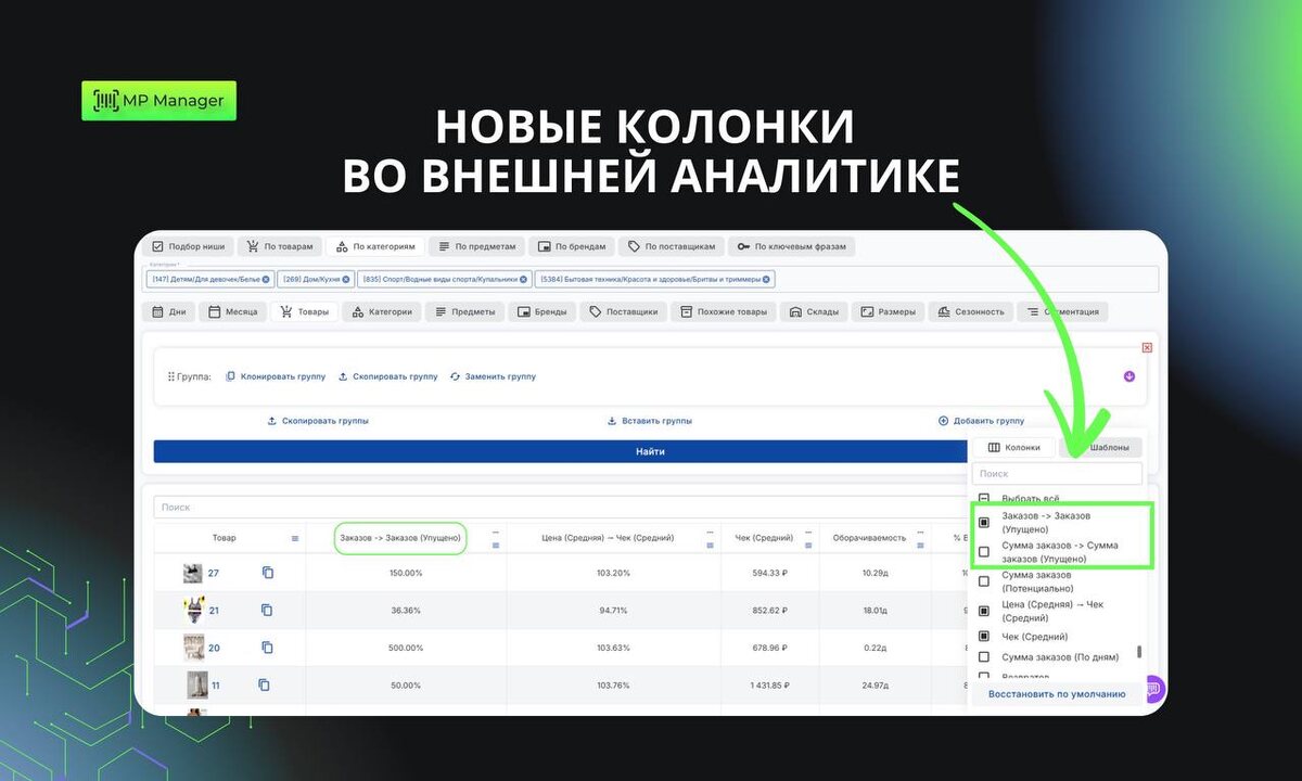 ΠΊΠΎΠ»ΠΎΠ½ΠΎΠΊ Π² ΠΏΠ°ΡΡ ΠΊΠ»ΠΈΠΊΠΎΠ² ΠΠ΅ΡΡΠΈΠΊΠΈ ΡΠΆΠ΅ Π΄ΠΎΡΡΡΠΏΠ½Ρ Π²ΠΎ Π²Π½Π΅ΡΠ½Π΅ΠΉ Π°Π½Π°Π»ΠΈΡΠΈΠΊΠ΅, Π²ΠΊΠ»ΡΡΠ°Ρ ΡΠΎΡΡΠΈΡΠΎΠ²ΠΊΠΈ ΠΈ ΡΠΈΠ»ΡΡΡΠ°ΡΠΈΡ. π ΠΡΠΏΠΎΠ»ΡΠ·ΡΠΉΡΠ΅ Π½ΠΎΠ²ΡΠ΅ ΠΏΠΎΠΊΠ°Π·Π°ΡΠ΅Π»ΠΈ Π΄Π»Ρ ΡΡΠΈΠ»Π΅Π½ΠΈΡ Π²ΠΎΡΠΎΠ½ΠΊΠΈ ΠΈ Π½Π°ΡΠ°ΡΠΈΠ²Π°Π½ΠΈΡ ΠΏΡΠΈΠ±ΡΠ»ΠΈ. π MP Manager β Π²Π°Ρ Π³Π»Π°Π²Π½ΡΠΉ ΠΏΠΎΠΌΠΎΡΠ½ΠΈΠΊ Π½Π° ΠΌΠ°ΡΠΊΠ΅ΡΠΏΠ»Π΅ΠΉΡΠ°Ρ