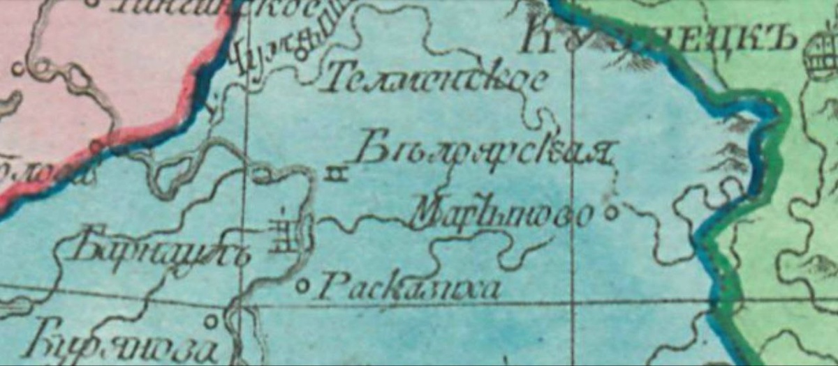 А вот 1792-й. И Барнаул и Тальменское (Телменское) и Бураново (Буряново) и Расказиха