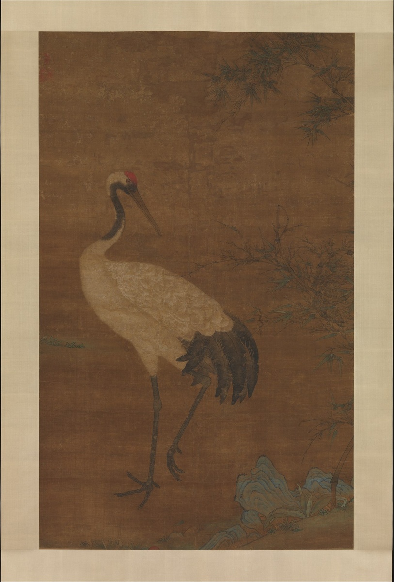 Загадочный журавль, восседающий среди изящных бамбуковых стеблей, словно приоткрывает завесу древнего китайского мира. Художник, чье имя затеряно в веках, использует тончайшие слои красок, чтобы создать эффект легкости, будто птица вот-вот взмоет в небеса. Это не просто искусство – это поэма, написанная на шелке, где каждая линия дышит атмосферой эпохи династии Мин.