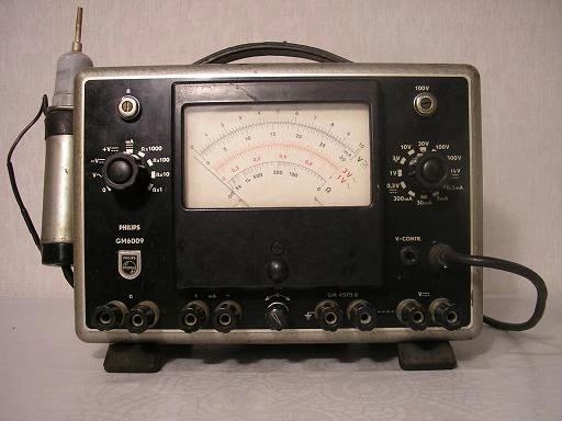 «Philips GM6009» сервисный ламповый вольтметр. Выпускался с 1956-го года в Голландии. Производитель: компания "Филипс". Прибор имеет следующие пределы измерения: напряжение постоянного тока 10 мВ-1000 В; переменное напряжение: 100 мВ-300 В; постоянный ток 10 µA-300 mA; сопротивление 10 Ом-5 МОм. Вольтметр собран на лампах: EAA91, E80CC, EZ80, OB2. Питание от сети переменного тока: 110, 125, 145, 200, 220, 245 В. Размеры: 250 x 200 x 170 мм. Вес: 5,2 кг. ➖➖➖➖ РАДИО(73!)