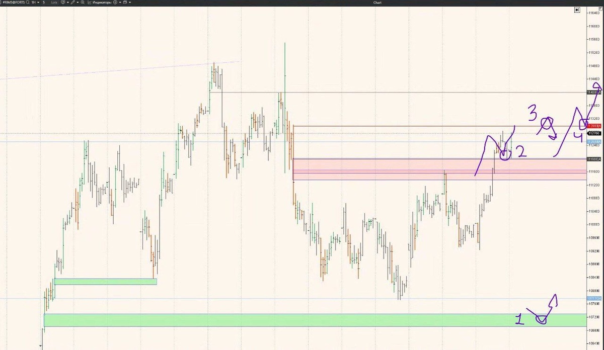 График Ри. Цена, собственно, пришла туда, куда должна была — я писал об этой точке притяжения тут. Сейчас рынок полон «оптимизма» на фоне трагедии (а любая война — это трагедия), разворачивающейся между Ираном и Израилем. Мне не кажется это убедительной причиной для роста. Хотя многие инфоблогеры весьма воодушевлены происходящим, а в чатах инвесторов и поклонников книг в духе «Богатый папа, бедная мама...😀» и принципов диверсификации царит дикий позитив. Я подобного не испытываю — по нескольким причинам: 1. Ликование этой части рыночного сегмента само по себе плохой знак. 2. События в мире совсем не располагают. 3. По Ри мы пришли в зону продавца стратегии 1000. Конечно, любую зону можно поглотить — и эту тоже. Но перевес вероятностей сейчас всё же за шорт. 📌 По моей технике: 1 — тест покупателя, он ещё будет. Это точка притяжения. 2 — манипуляция с продавцом стратегии 1000 выполнена, произведён обратный тест. 3 — есть уровень начала бара продаж — он тоже может быть отманипули