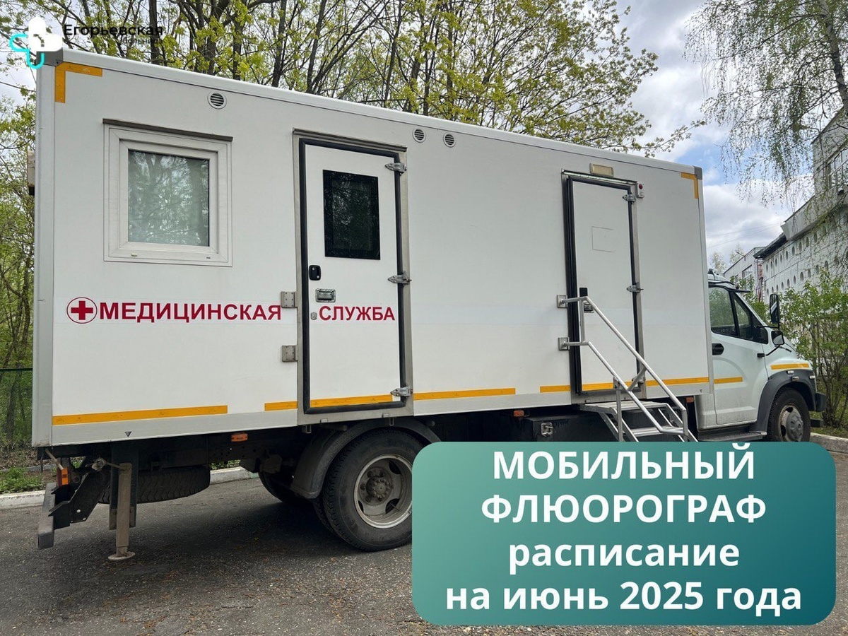 График мобильного флюорографа на июнь 2025 года 18 июня 2025 г.- г. Егорьевск, поселок Шувое, улица Ленинская, дом 154; 20 июня 2025г.- г. Егорьевск, поселок Рязановский, улица Молодежная, дом 2; 21 июня 2025 г.- г. Егорьевск, парк "200 -летия Егорьевску"; 25 июня 2025 г.- г. Егорьевск, деревня Дмитровка, дом 4А; 27 июня 2025 г. - г. Егорьевск, село Саввино, дом 6; 28 июня 2025 г. -г. Егорьевск, парк "200 -летия Егорьевску" #подмосковье #НашеПодмосковье #муниципальныйокругЕгорьевск #моЕгорьевск #егорьевскоетелевидение #егорьевскоетв #Егорьевск #администрацияегорьевск