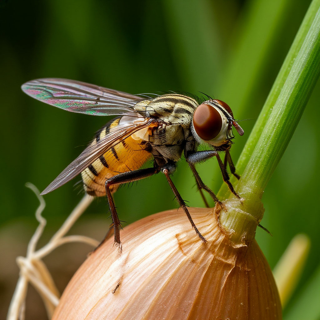 Луковая муха — небольшое насекомое размером всего 5-7 миллиметров. Внешне похожа на обычную комнатную муху, только меньше. Но не дайте себя обмануть её скромными размерами!