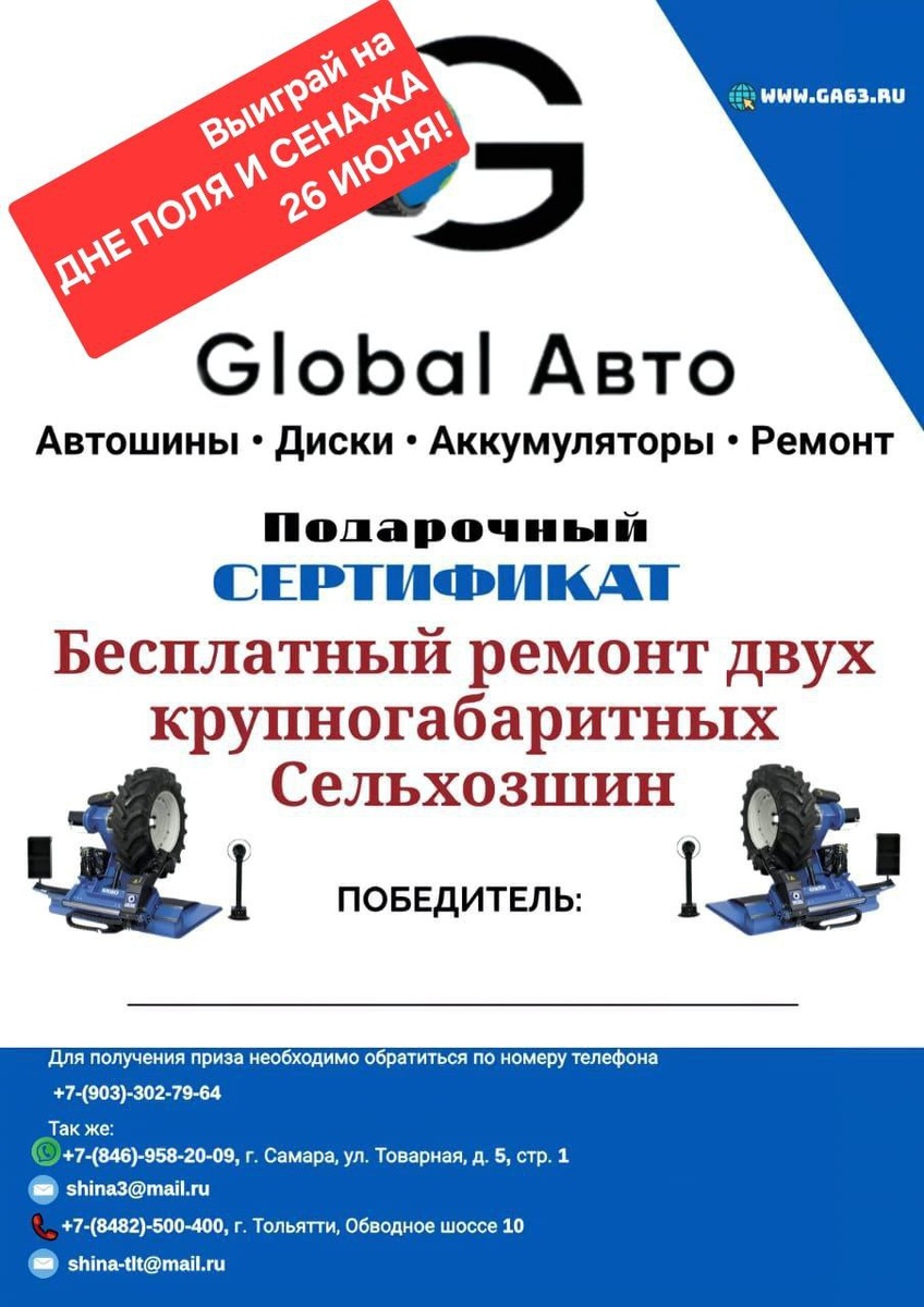 Представьте: вы мчитесь на День Поля и Сенажа, чтобы узнать все о новинках агропромышленности. Время поджимает, а тут еще и дождь! Но не стоит расстраиваться! Компания «ГЛОБАЛ-АВТО» приготовила для вас отличный стимул: сертификат на бесплатный ремонт двух крупногабаритных сельхозшин! Представляете, какая это экономия и спокойствие в разгар сезона? Уже зарегистрировались на День Поля и Сенажа? Регистрация здесь: https://soya-pfo.ru/agropoligon-privolzhe-2025/samarskiy-den-polya-2025/