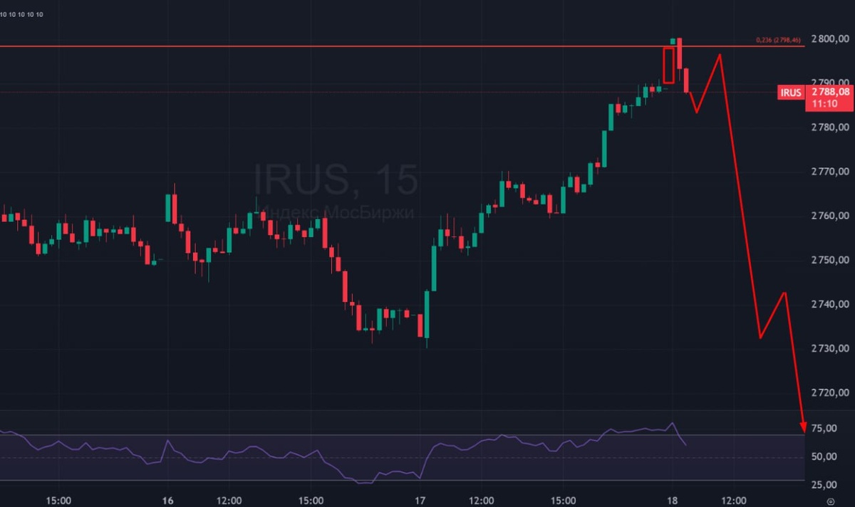 🏦 Индекс Мосбиржи! 🟢 2800 достигнуто! Вчерашние блогеры-трейдеры, считавшие, что индекс заряжен на рост, сегодня набрали в рот воды, так как с утра идет откат и закрываем утренний гэп. Считаю, что технический отскок пришел к своему таргету, эйфория на самом пике получена, осталось только мини-бычью ловушку нарисовать, и можно вниз двигаться. 🚗 Жду индекс на 2700 и 2650. #индекс #рубль #индексмосбиржи #ММВБ #IRUS #MXI #MIX #IMOEXF #bogdanoffinvest