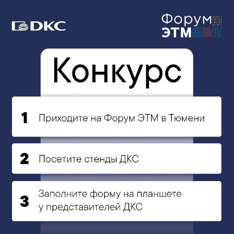 Посещайте стенд ДКС на Форуме ЭТМ в Тюмени и выигрывайте набор для барбекю от ДКС! 🎁 Что нужно сделать: 🔴 Посетить стенды ДКС № 41, 42, 69 и 70. 🔴 Заполнить форму на планшете у представителей ДКС; 🔴 Дождаться подведения итогов; 27 июня в 16:00 мы определим 3-х победителей в онлайн-формате с помощью рандомайзера! Ждем вас!