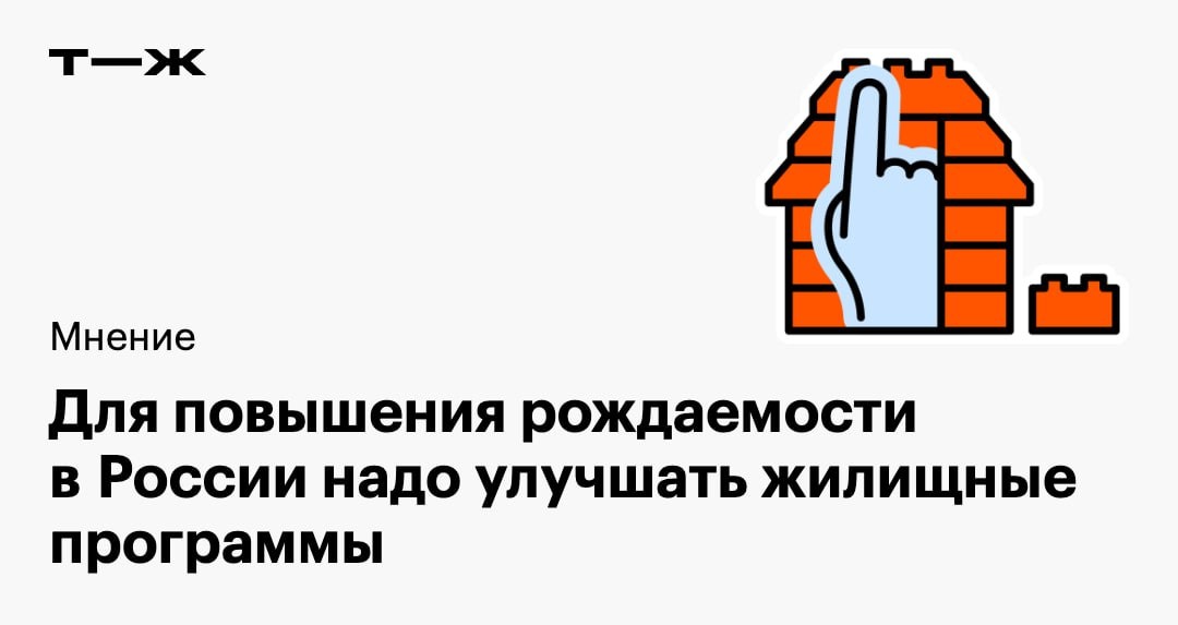 Если в семье один ребенок, ей полагается только материнский капитал — 1—1,2 млн рублей, чтобы хватило на первый взнос на скромную квартиру в крупном городе. Если два ребенка — льготная ипотека под 2—3% на двух- или трехкомнатную квартиру. Семье с тремя детьми должны предоставлять трехкомнатную квартиру в безвозмездное пользование, чтобы оплачивать только коммуналку и счетчики. Именно такие меры, по мнению нашего читателя, помогут увеличить рождаемость. Согласны? Приходите обсуждать в комментарии: https://t-j.ru/d-tg/nuzhna-kvartira-opinion