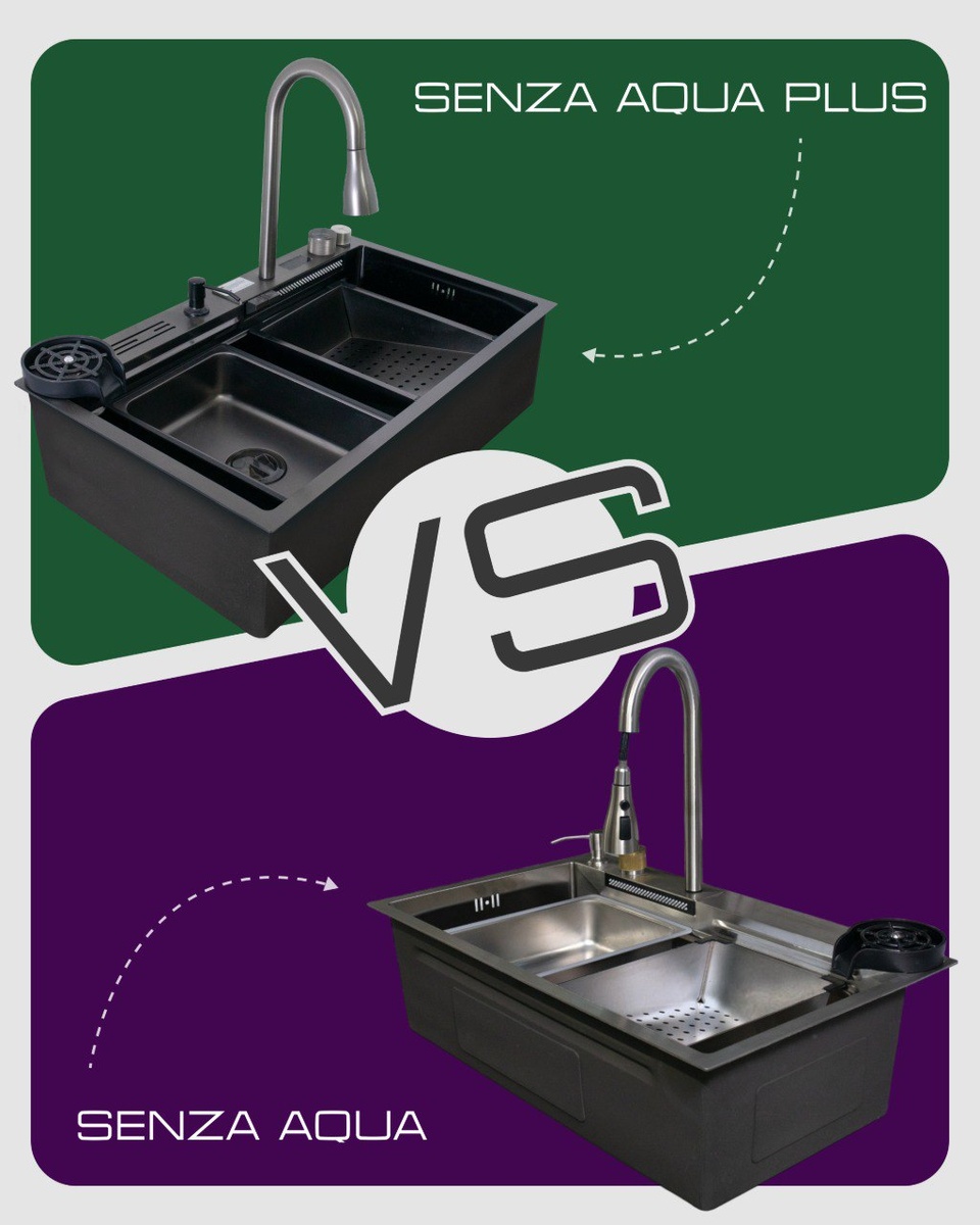 🆚 Senza Aqua vs Senza Aqua Plus Две мойки, один стиль — но с разными возможностями. Разбираемся, чем отличаются 🔍 🟪 Senza Aqua ✔️ Лаконичный дизайн ✔️ Глубокая чаша и расширенная комплектация ✔️ Универсальный стиль под любую кухню ✔️ Управление — классическое Подходит, если вы: — цените минимализм — предпочитаете физические элементы управления — не используете много цифровых функций 🟩 Senza Aqua Plus 🌟 Отличия от классической модели: ✔️ Встроенный дисплей с управлением ✔️ Цифровая индикация, функции регулировки температуры, таймера и др. ✔️ Больше контроля — меньше лишних движений Выбор для тех, кто: — любит технологии и «умную» кухню — хочет точный контроль и удобство — проектирует кухню в hi-tech или премиум-формате 🔗 Подробнее о моделях и характеристиках — на нашем сайте https://senzamf.ru/products/moyki Выбирайте свою идеальную мойку — с комфортом и стилем от SENZA.