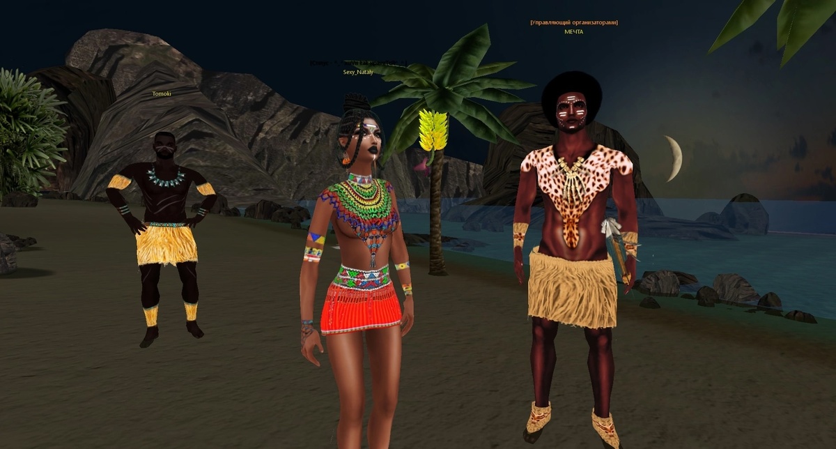 Как географ и археолог, я видел в Африке колыбель человечества-ту страну, откуда первые люди проникли в северные страны вместе с потоком переселившихся на север животных. Интерес учёного ещё более укрепил юношеские мечты о душе Африки-о могучей, все побеждающей древней жизни, развившейся по просторам высоких плоскогорий, водам мощных рек, по овеваемым ветрами побережьям, открытым двум океанам. Из рассказа "Голец подлунный". Наши любимые организаторы посвятили свои вечеринки яркой Африке. Дресс-кодом на мероприятиях были наряды туземцев и тёмные загары. AFRICAN PARTY Организатор вечеринок __DILER__ пригласил гостей в Vanilla Sk. Игроки превратились в африканцев. Необходимо было придумать рассказ на тему, чем африканское племя занимается тёмными жаркими вечерами, с чем наши тёмнокожие красотки с успехом справились. Адрес локации: vww://lovecity3d.vww/@67314 Галопом по Африке и нотам Очаровательная хХх_ЦаЦа_хХх провела музыкальную викторину в Ночном клубе Black and Wh