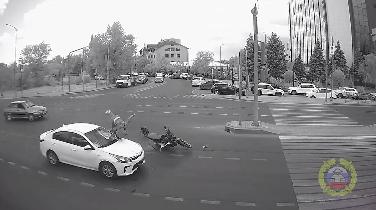 В Дзержинском районе Волгограда нетрезвый водитель мотоцикла без прав оказался под колесами легковушки. Момент ДТП сняли камеры видеонаблюдения. Пострадавшего госпитализировали. Фото: ГУ МВД России по Волгоградской области Водитель Kia Rio сбил пьяного мотоциклиста на проезжей части в Волгограде. ДТП произошло рядом с домом № 3 по шоссе Авиаторов. Как сообщает ГУ МВД России по региону, водитель двухколесника при этом не имел права управления транспортом. Его доставили в больницу. Смотрим «Вести. Волгоград»: smotrim.ru/Volgograd Подписывайтесь на наши страницы в соцсетях: Telegram, ВКонтакте, Одноклассники, Дзен
