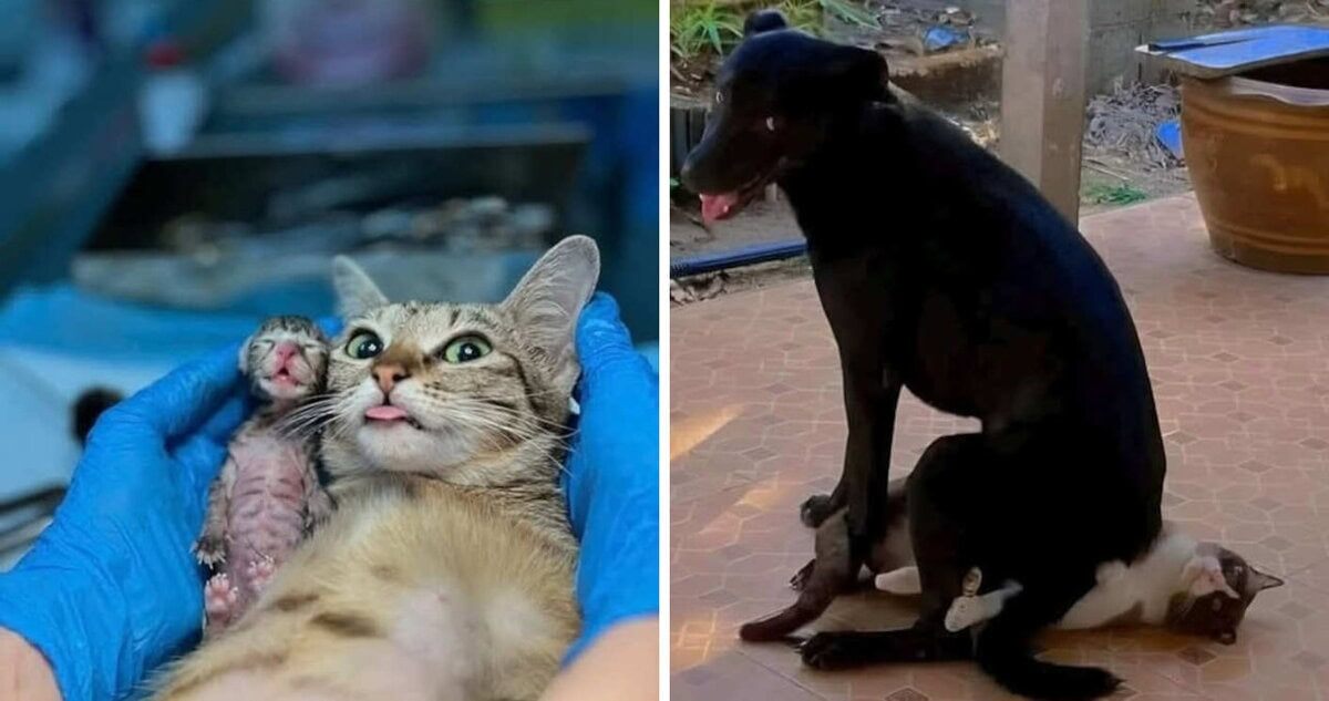 Всё, что нужно малышу — это любовь, тепло… и молоко, даже если ты котёнок, а твоя мама — собака. У этой пары всё по-настоящему: взаимопонимание, доверие и полная апатия к тому, что «так не бывает». Усы, лапы и хвост — а с кем из них жить, решает не наука, а сердце. И вот оно, пожалуйста — семейный завтрак 2.0.