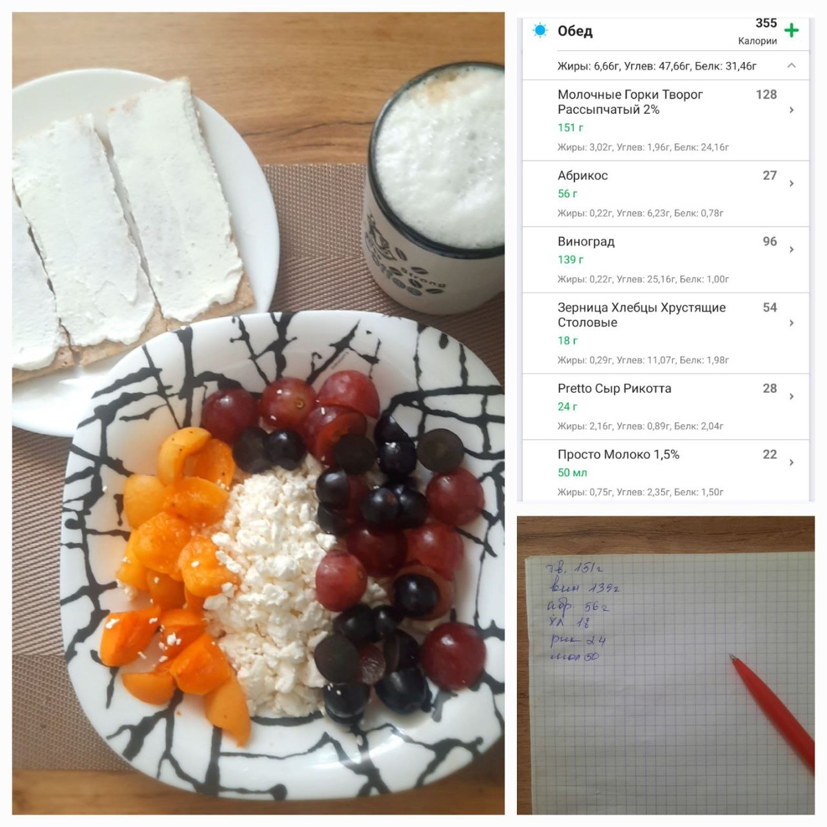 💞 На фото показала весь приём пищи с КБЖУ: к творогу с ягодами добавились хлебцы с рикоттой и капучино. Именно поэтому я сначала все вношу от руки✍️ (это делается моментально), а после еды уже в приложение📲 так как хочется побыстрее поесть, а не ковыряться в приложухе в поиске нужных продуктов.