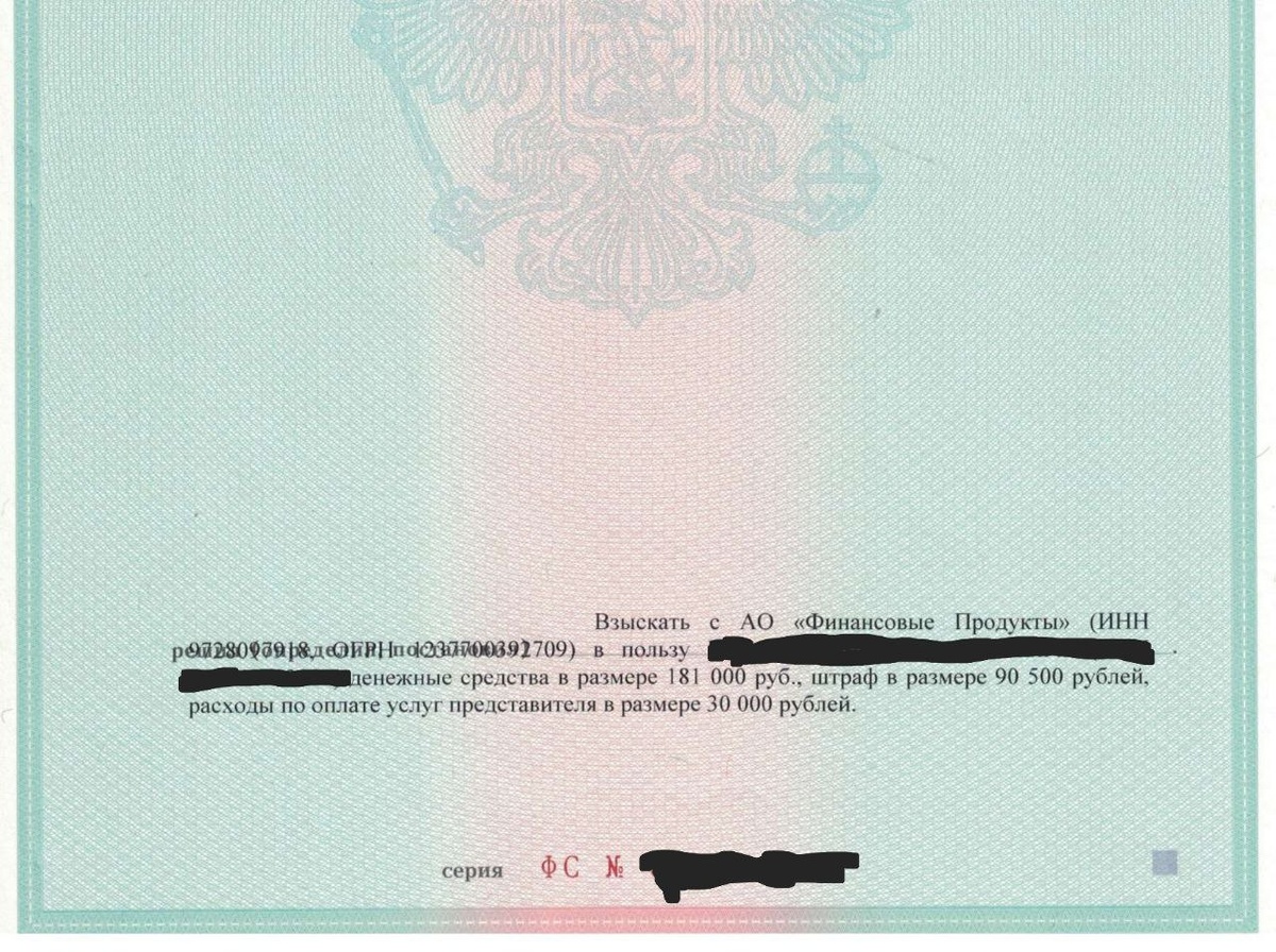 ⚡️✨ Хочу поделиться успешным результатом по делу о взыскании денежных средств с АО “Финансовые продукты” в Советском районном суде