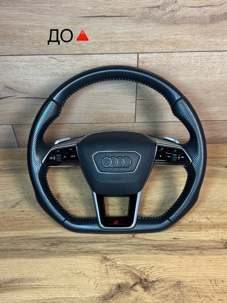Чип тюнинг и перешив руля Audi A6 2.0 TFSI. Мгновенно увеличили мощность без потери ресурса двигателя. Стоковые данные: 245 лс, 370 нм После чип тюнинга: 320 лс, 460 нм Итого прирост составил 75 лошадиных сил и 90 ньютон метров крутящего момента. Руль изначально был кожаный, весь потёртый. Перетянули его в алькантару цвета антрацит с небольшим утолщением, украсив нитью тёмно-серого цвета как в оригинале.