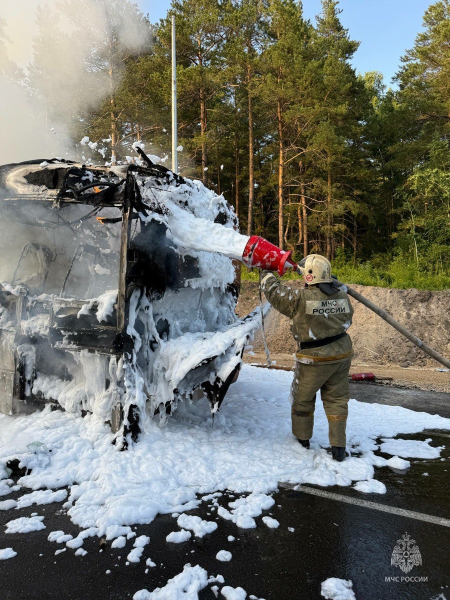 🚨В Барнауле на пересечении шоссе Ленточный бор и Южного тракта произошло возгорание в моторном отсеке маршрутного автобуса №119. По предварительным данным, в салоне находилось около 60 человек (дети отсутствовали). К счастью, все пассажиры успешно эвакуировались самостоятельно, пострадавших нет. На месте оперативно работали 6 пожарных и 2 автоцистерны. Возгорание было ликвидировано на площади 18 кв.м. ‼️Предварительная причина – техническая неисправность систем или узлов транспортного средства (очаг возгорания находился в моторном отсеке). 📍Специалисты МЧС России напоминают о том, что машина полностью выгорает за 4-6 минут. Пожарная безопасность автомобиля, в первую очередь, зависит от бдительности и ответственности его владельца, от соблюдения им правил и норм эксплуатации, своевременного технического обслуживания. ✅Безопасность начинается с тебя! @mchs_altkray