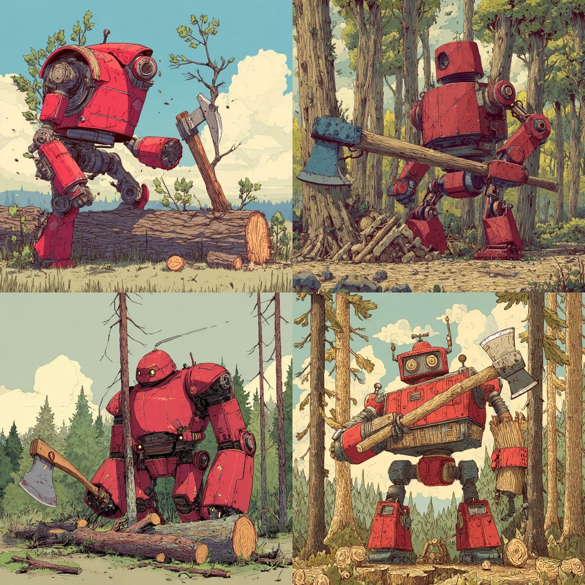 🔴 **Роботы и природа: кто кого?** Представьте себе огромного красного робота, который размахивает топором в густом лесу 🌲🤖. Звучит как сцена из фантастического фильма, правда? Но теперь вы можете оживить это видение с помощью "MidJourney"! Просто введите промпт: **"Большой красный робот рубит деревья топором"**, и вас ждёт удивительная визуализация, где технологии сталкиваются с природой. Хотели бы вы увидеть, как искусственный интеллект интерпретирует такие сюжеты? Или, может быть, придумали ещё более необычную сцену? Делитесь идеями — AI справится с любым вызовом! 🌐 "Создавайте будущее вместе с нейросетями" и наслаждайтесь их креативностью. #MidJourney #нейросети #искусственныйинтеллект #AIискусство #технологии #роботы https://tsss.me/eMvPZ7JV