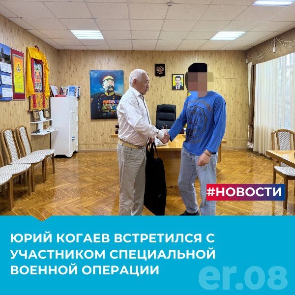 Секретарь Лаганского местного отделения, глава района Юрий Когаев встретился с нашим земляком-участником специальной военной операции
