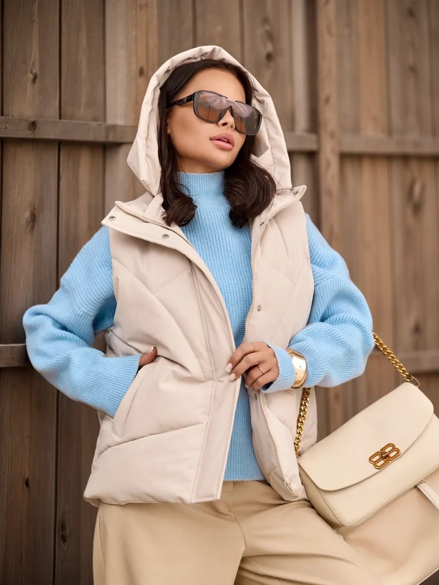 Стильная стеганая жилетка без рукавов, идеальный вариант на весну. Фасон с воротником, на молнии. Прекрасно подходит на каждый день, для города и путешествий.