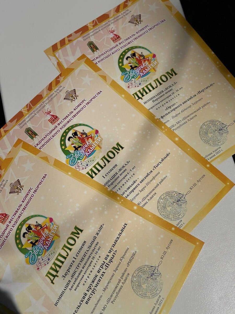 🔸Диплом за участие в номинации "Вокал" народное пение получил "Орэд" спутник народного фольклорного ансамбля "Нартшъау"(руководители Пафов А.З. и Меремова З.М.);