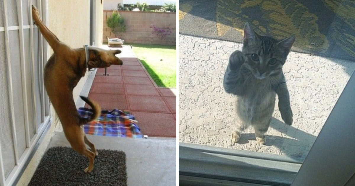 Многие кошки и собаки обожают проводить время на улице. Однако стоит им увидеть перед собой запертую дверь, они тут же начинают проситься внутрь. Такое поведение — не редкость для домашних питомцев. Чтобы растопить сердце хозяина, они используют своё главное оружие — обаяние и умоляющий взгляд. Как тут откажешь? Но перед тем, как впустить пушистика домой, нужно обязательно сделать несколько забавных снимков. Кошки — главные противники дверей. Это природная особенность. Животные оберегают свою территорию, поэтому закрытые двери мешают им вести полноценный обзор территорий, которыми они владеют. Некоторые собаки тоже не любят закрытые двери. Однако их недовольство редко связано с желанием следить за своей территорией со всех точек обзорных точек. Как правило, они желают поиграть, поесть или пообщаться с хозяином, который надолго оставил их в одиночестве. Здесь вы сможете посмотреть другую смешную подборку, в которой домашние питомцы решили спрятаться от своих хозяев, но у них это не совс
