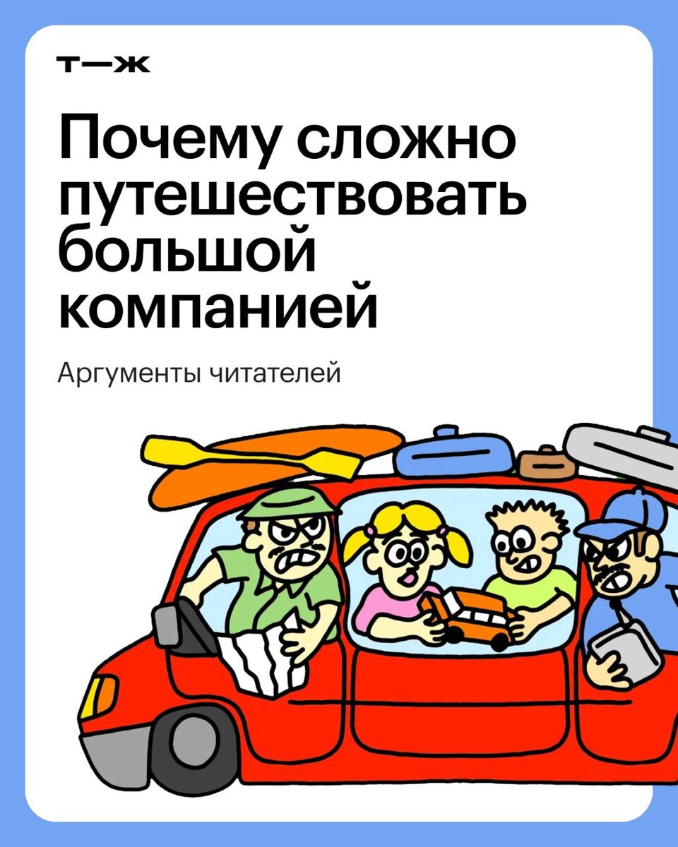 😧😬😳 Как вас много… или 😍🥰😘 Как вас много!!! Даже если вы хорошо знаете своих попутчиков, иногда путешествовать большой компанией бывает непросто. Мы собрали 13 мнений читателей Т—Ж о поездках большой группой. А как вы относитесь к таким путешествиям? Ставьте реакцию: 👍 — если едет много друзей, будет интереснее! 🌚 — все равно предпочитаю путешествовать только с близкими 🤝 — всегда можно найти золотую середину