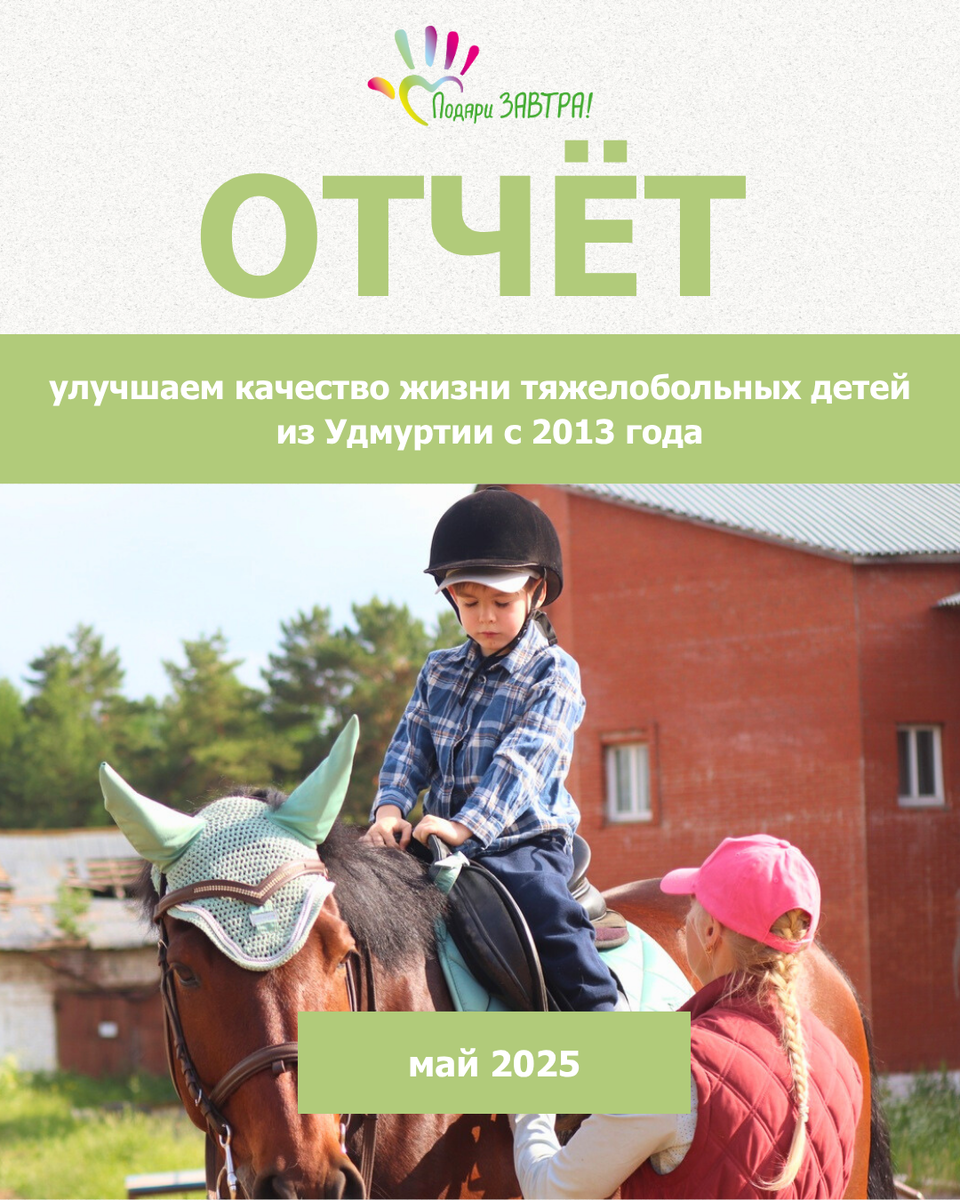 Подробные отчёты о поступлении денег на счёт Фонда и помощи детям, а также крупные долгосрочные сборы, смотрите на официальном сайте podarizavtra.ru/