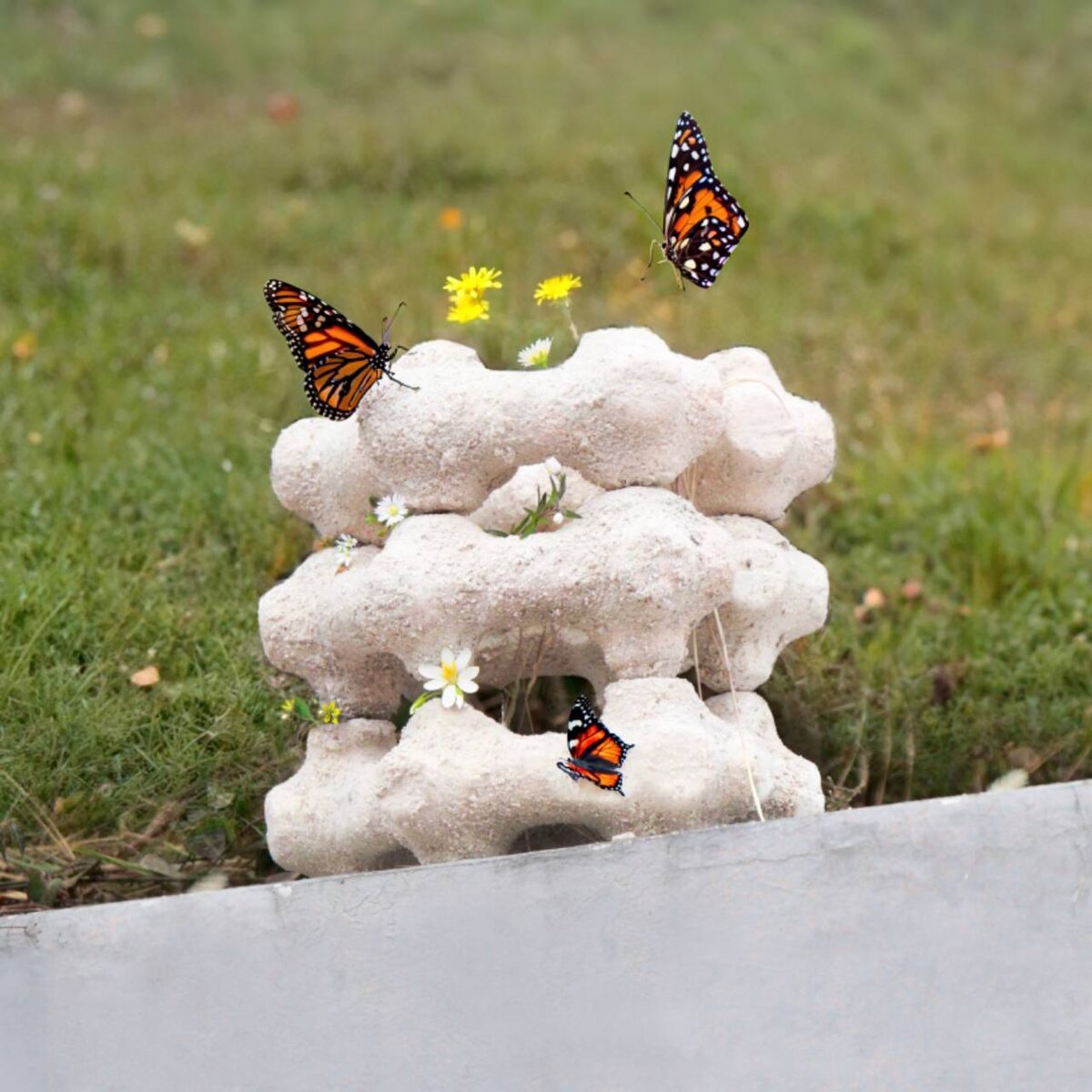 EggNest: городское убежище для бабочек из… яичной скорлупы — команда южнокорейских дизайнеров создала биоразлагаемое модульное убежище для опылителей в самых каменных джунглях. Это не просто скульптура — это экосистема. EggNest выполнен из переработанной яичной скорлупы и почвы: этот природный композит не только разлагается без следа, но и создает идеальную текстуру для того, чтобы бабочки могли спокойно приземляться и укрываться. Грубоватая поверхность помогает удерживаться, а изогнутая форма гнезда регулирует микроклимат внутри, защищая от жары, холода и хищников. Экосфера — о важном в экологии 🌿