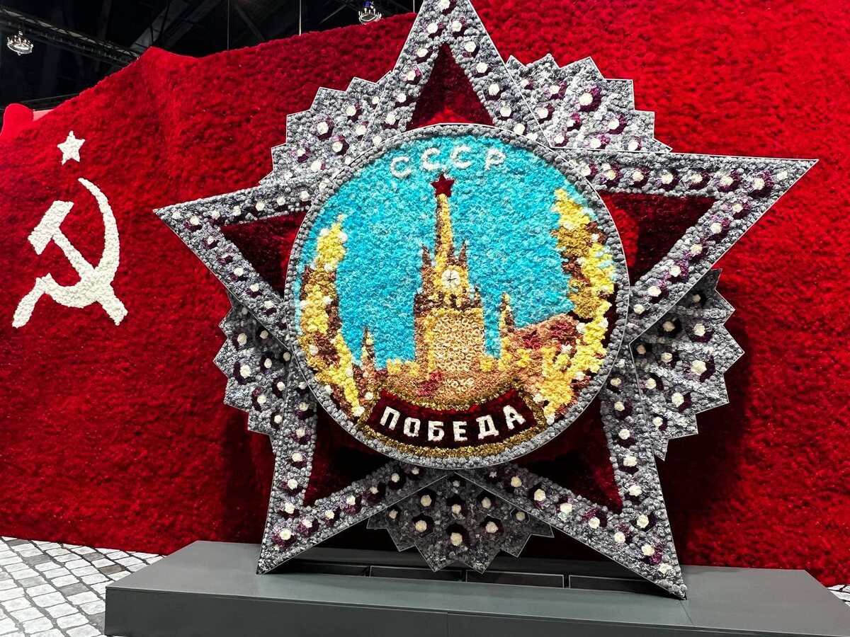 Панно из живых цветов представила на ПМЭФ компания «Уралхим». Композиция состоит примерно из 200 тысяч растений.