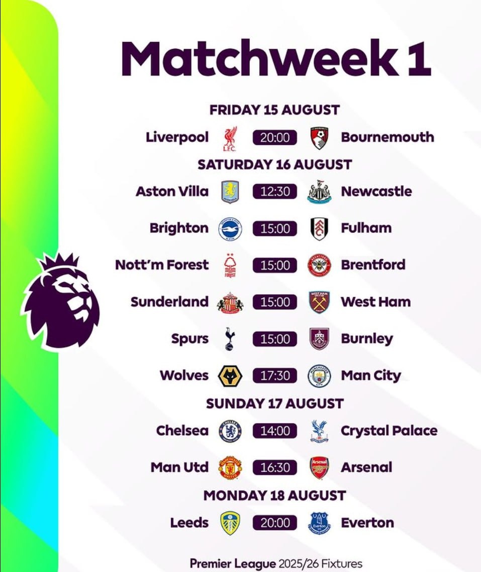 🏴 Расписание первого тура чемпионата Англии