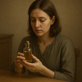 Муж соборовался, принес домой масло и вино в баночке. Говорит: вот это я тебе принес. То есть сам он употреблять не собирается, а предложил это сделать мне.