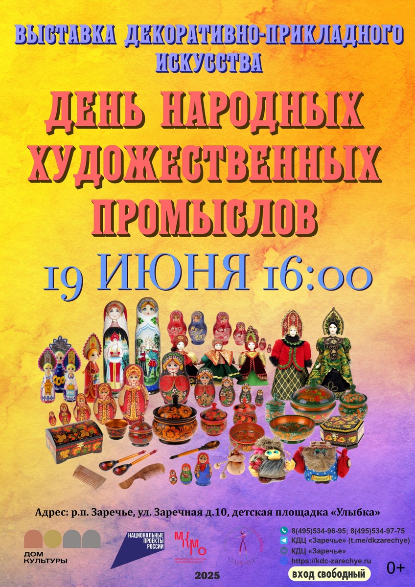19 июня, в преддверии Дня народных художественных промыслов, в КДЦ "Заречье" откроется выставка декоративно-прикладного искусства. 🎨