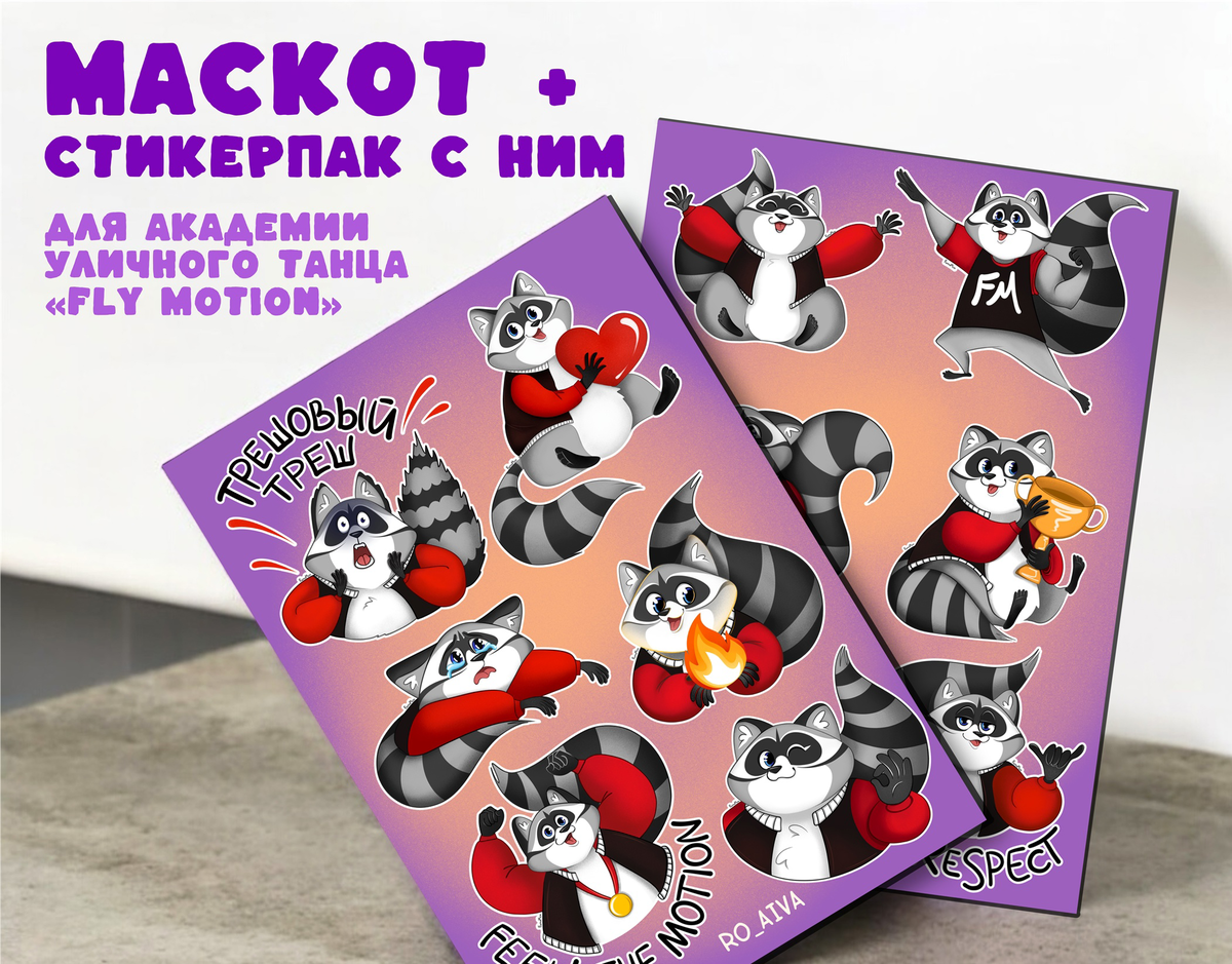 Привет! Недавно ко мне пришла классная академия уличного танца «Fly Motion», и я создала для них собственного маскота, который теперь сопровождает их коллектив на разнообразном мерче, а также в социальных сетях