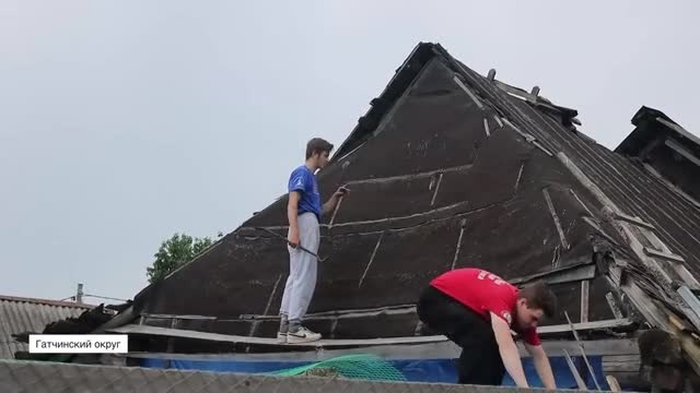 Помощь своим. Волонтеры проекта «Мы вместе» помогли перестелить крышу дома семьи участника специальной военной операции из Гатчинского округа. Пожилые родители защитника Отечества были не в силах выполнить ремонт самостоятельно. Откуда волонтеры узнали о беде семьи и как быстро им удалось помочь, расскажет корреспондент ЛенТВ24 Максим Бажанов. Одну за другой волонтеры срывают прогнившие доски с крыши сарая. Она стала совсем худой и уже не спасала ни от дождя, ни от ветра. Сын помочь тоже сейчас не может. Он защищает родину в зоне СВО. От безысходности Людмила Салмина обратилась в фонд «Защитники Отечества». Там женщине помогли составить заявку в волонтерский штаб всероссийской акции взаимопомощи «Мы вместе». Чинить крышу матери бойца СВО откликнулась целая бригада волонтеров. Причем все ребята с богатым опытом: они участвовали в ликвидации чрезвычайных ситуаций и оказывают регулярно подомовую помощь нуждающимся. В итоге волонтеры сняли прогнившие доски с крыши и покрыли ее прочным тент
