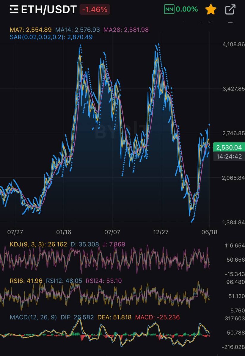 ETH восстанавливается после сильного слива — но рынок всё ещё в зоне риска. На прошлой неделе я взял ETH после падения, и да, я инвестирую в долгосрок, но даже в таком режиме вижу локальные возможности, которые может использовать любой. Цена пытается пробить MA14 и MA28 (зона $2580), RSI вышел из перепроданности, MACD и KDJ сигнализируют разворот. Если пробьём и закрепимся выше — следующая цель $2870, а при хорошем фоне и $3100. Если рост захлебнётся — можно подбирать от $2470 или даже $2100. Часть позиции держу на долгосрок, остальное — маневрирую. Фиксирую, докупаю, отслеживаю уровни. Подписчики, которые следовали аналогичным сценариям раньше, зафиксировали +31% и +52% за месяц. Возможности в крипте появляются регулярно. Главное — видеть их вовремя.