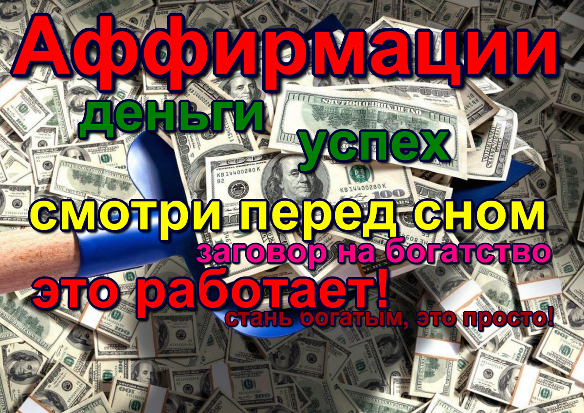 Необходимо слушать или читать такие афирмации для самоубеждения в том что вы богаты и успешны. Когда вы сами поверите в это, тогда ваш доход и успех начнут расти в реальности.