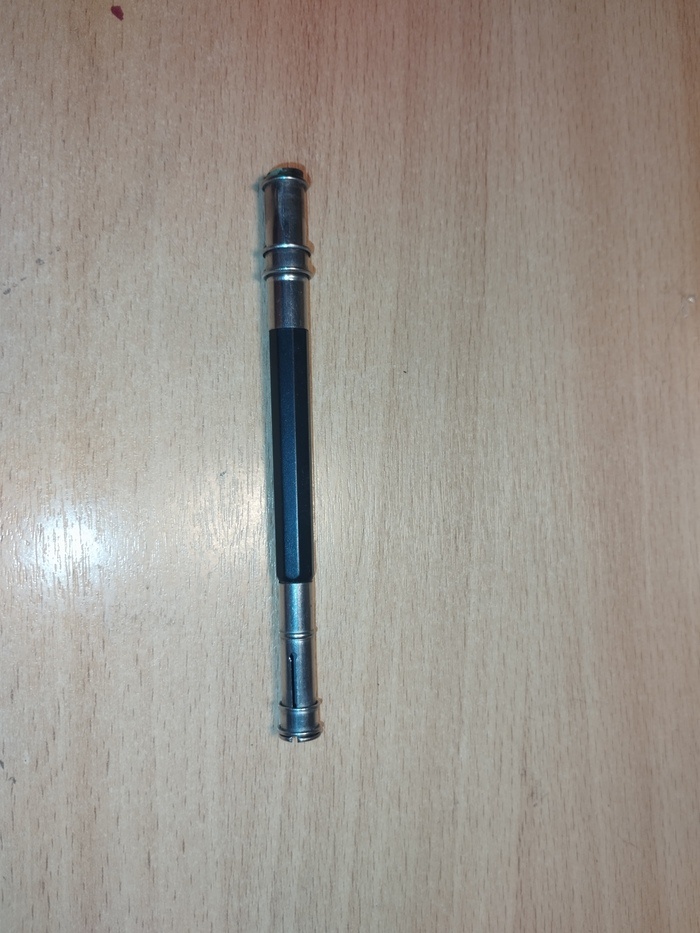 Вчера написал рассказ про точилку из СССР, статья вызвала отклик у Пикабушников. Продолжу тему. Как вы думаете, что на фото? Сколько стоил карандаш в СССР? Что делать с карандашом когда он стал короткий и писать им стало неудобно? Казалось бы выкинул и вся недолга. Но в СССР умели ценить вещи, ремонтировать вещи и продлевать их срок службы. Ручка деревянная с двух сторон имеет металлические трубки с цанговым зажимом. Трубки разного диаметра. А вот и конец истории, это приспособление для работы с короткими карандашами, удлинитель. На фото современная реплика. Точно такой же удлинитель был у моей бабушки в деревне, (к сожалению он затерялся). Я будучи школьником удивлялся зачем это нужно, можно выкинуть огрызок карандаша и новый купить. Чуть позже я понял на практике, карандаш карандашу рознь. Если тебе попался хороший карандаш, особенно если импортный немецкий или индийский то тебе крупно повезло. Моим любимым был карандаш золотого цвета с нарисованной на нём веточкой с листьями. Сейчас