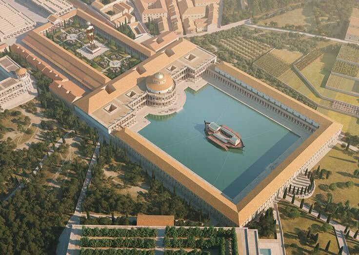 Дворцово-парковый комплекс в Риме, строительство которого началось после разрушительного пожара 64 года н. э. Это крупнейшая по площади городская резиденция монарха, когда-либо существовавшая в Европе, однако уступающая в площади Запретному городу в Пекине. После гибели Нерона в 68 году недостроенный дворец был заброшен, при Тите сгорел, его территория была вновь открыта публике и застроена общественными зданиями (Колизей, форум и термы Траяна, Триумфальная арка Тита, Базилика Максенция и др.). Римский пожар 64 года расчистил в городе обширные пространства, прилегавшие к Палатинскому холму, центру империи, некогда месту жительства легендарных царей Рима. Первым цезарем, построившим свой дворец на склонах Палатина, был Август (первое десятилетие до н. э.). Тиберий, когда жил в Риме, обитал во дворце Августа, и вероятно расширил его. В четвёртом десятилетии н. э. Калигула выстроил на Палатине новый дворец, соединённый с Форумом высоким деревянным мостом, "чтобы ходить в гости к Юп