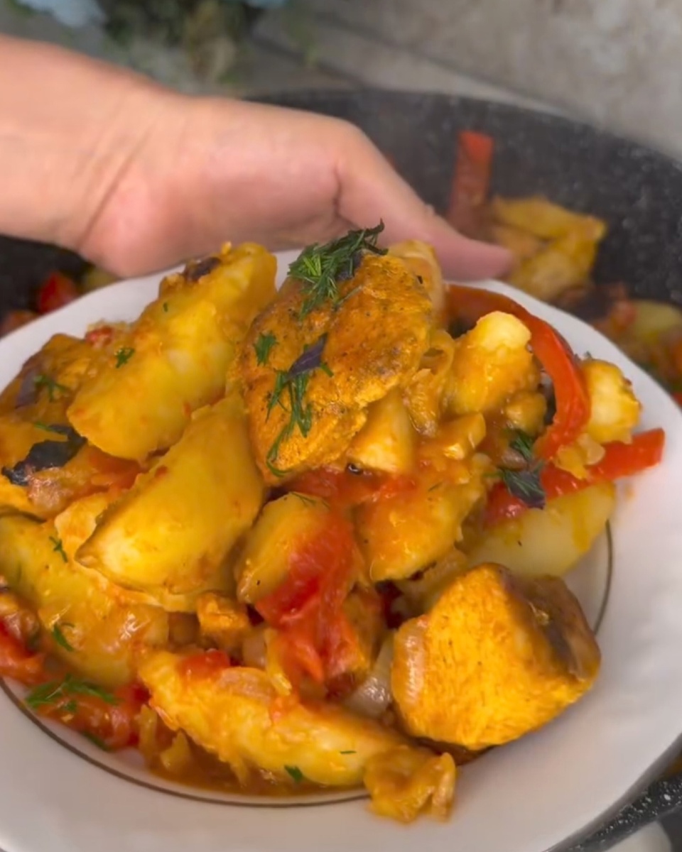 Иногда хочется приготовить что-то домашнее, сытное, ароматное, но без горы посуды и сложных шагов. Это блюдо — как раз из таких. Всё готовится в одной сковороде, а на выходе — полноценный обед или ужин, насыщенный вкусами и ароматами. Идеально, когда нужно накормить семью быстро, вкусно и без лишней суеты. Сначала мариную курицу. Нарезаю филе кусочками, добавляю соль, паприку, чёрный перец, хмели-сунели и немного масла. Перемешиваю и оставляю на 30 минут. Пока маринуется — занимаюсь остальными ингредиентами. Картофель нарезаю средними брусочками и обжариваю на сильном огне до румяной корочки. Он должен подрумяниться, но не пережариться. Затем выкладываю его в отдельную тарелку. В этой же сковороде обжариваю маринованную курицу — до золотистости. Как только мясо подрумянится, добавляю лук, нарезанный полукольцами. Обжариваю пару минут, до мягкости. Следом отправляется болгарский перец — лучше нарезать соломкой, чтобы он не потерял форму. Добавляю измельчённый чеснок, даю ароматам раскры