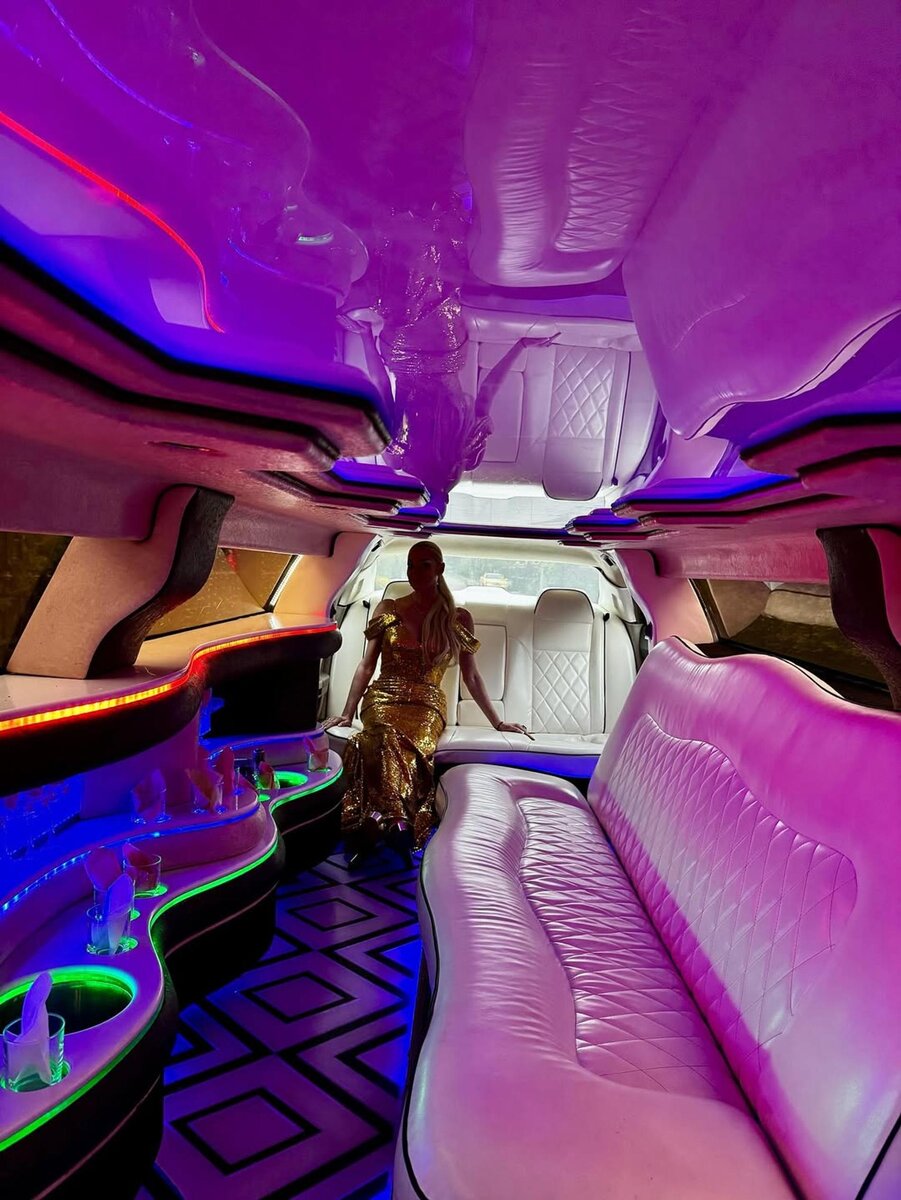 ✨ Анастасия Волочкова в лимузине. ✨ Анастасия Волочкова продемонстрировала свой любимый лимузин в «золотом» платье. «Еду красиво, в платье. Люблю белый цвет», — поделилась она в личном блоге. Интерьер лимузина с белым диваном и розовой подсветкой впечатляет, а бар украшен красными и зелеными световыми полосами. Артистка отметила, что не тратит время зря, хотя нашла минутку, чтобы показать свой роскошный транспорт. Фанаты смогли оценить её наряд с открытыми плечами и золотистым блеском, несмотря на шум. Что вы думаете об образе Анастасии? 💫