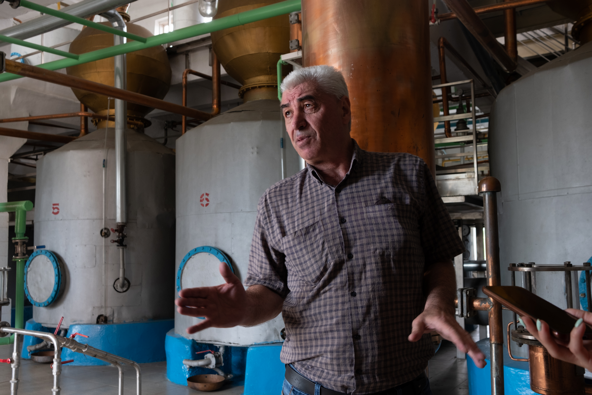— Это самый старый завод в России, производство коньяка в стране началось именно с Кизляра, — рассказывает он.