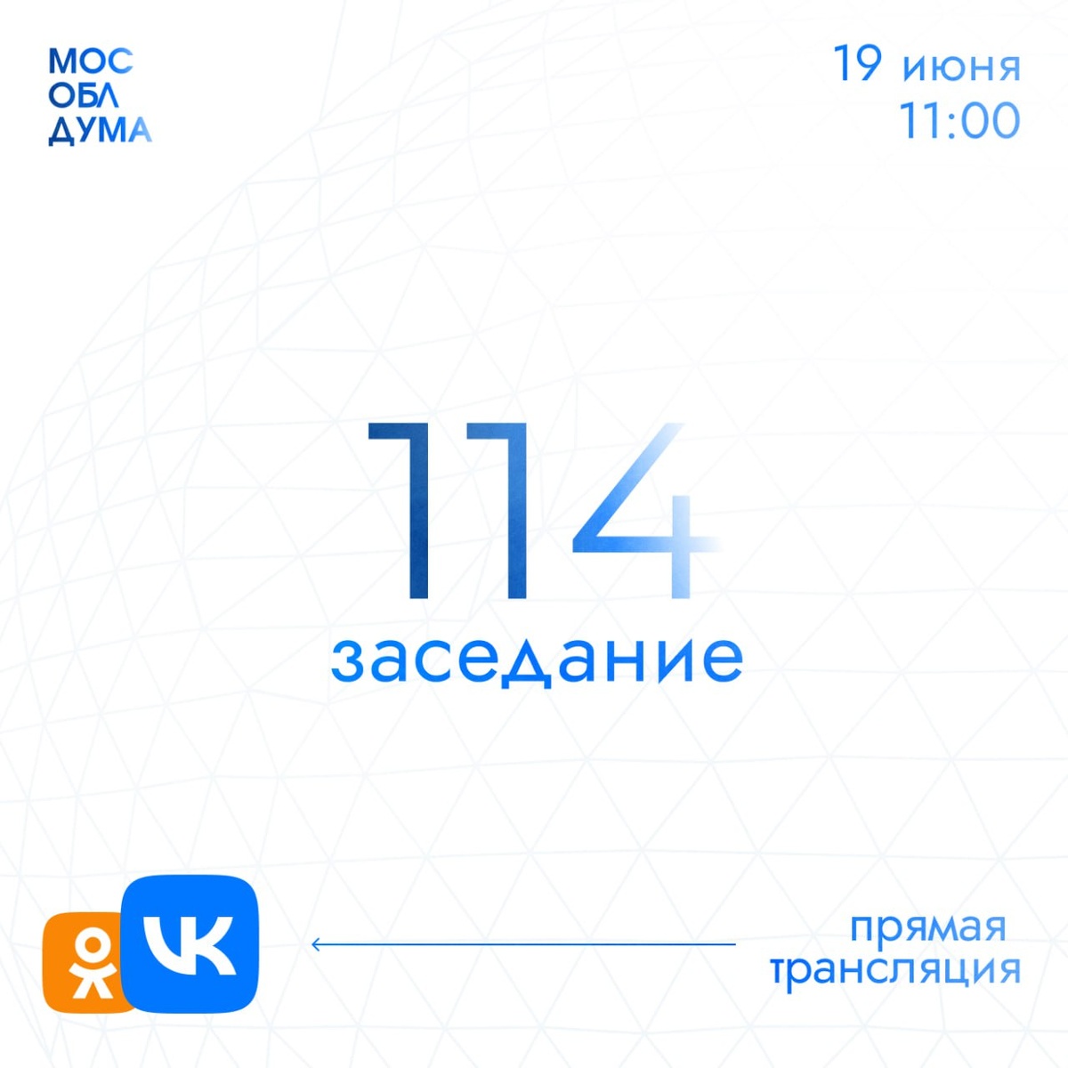 ⚡️Завтра, 19 июня, в 11.00 состоится 114-е заседание Мособлдумы